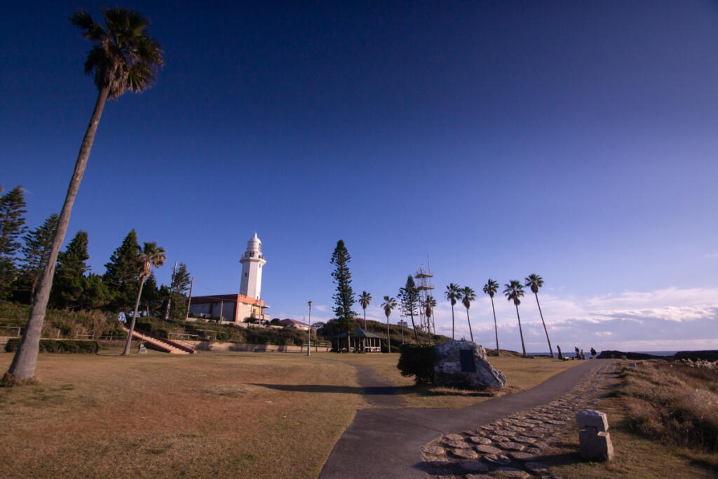 関東大震災で倒壊し、現在の白いコンクリート造りとして復旧されましたが、この白亜の姿があまりに美しく「白鳥の灯台」と呼ばれてきました。全国に16しかない「登れる灯台」のひとつで、らせん階段をのぼった先の展望台からは、房総の海岸線がぐるりと弧を描き、太平洋を一望することができます。